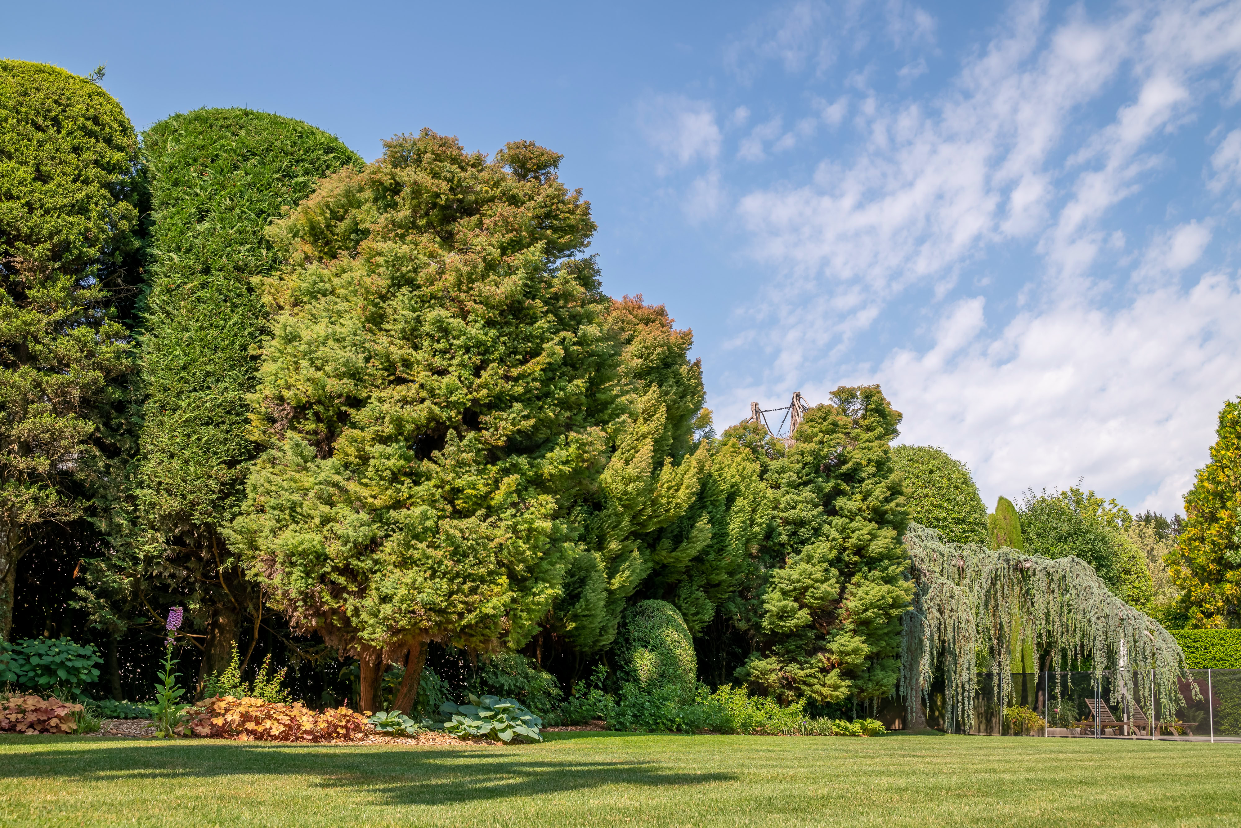 Conçu et réalisé par Pottu & Seitz, ce jardin de 1’500 m² à Cologny repose sur une structure claire et fonctionnelle. Des cheminements minéraux dessinent les parcours, guidant le regard à travers des espaces végétalisés.