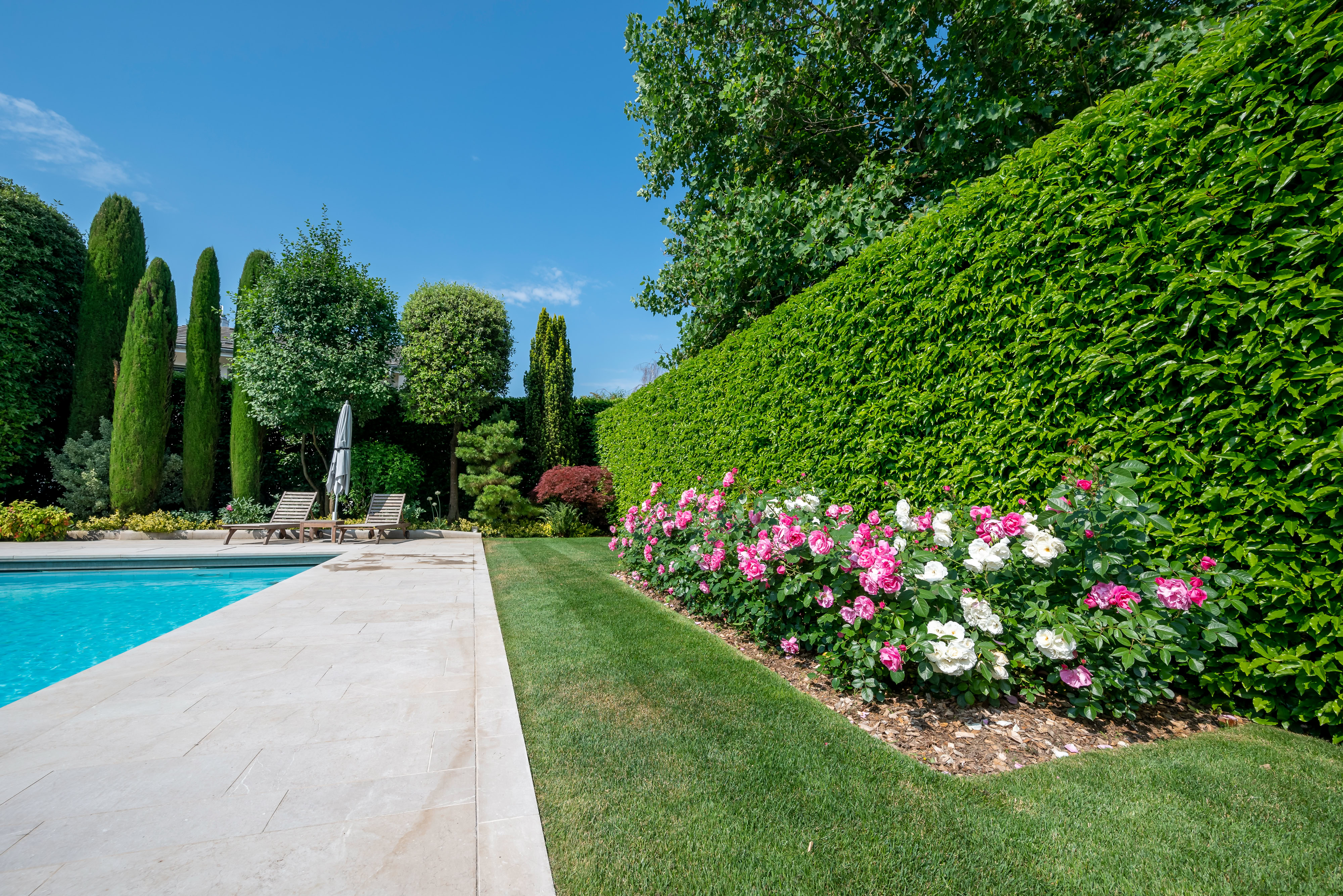 Projet complet : conception, plans d’exécution, direction de travaux et direction architecturale. Réalisé avec rigueur et sens du détail, suivi par nos équipes d’entretien pour une pérennité du jardin dans le temps.